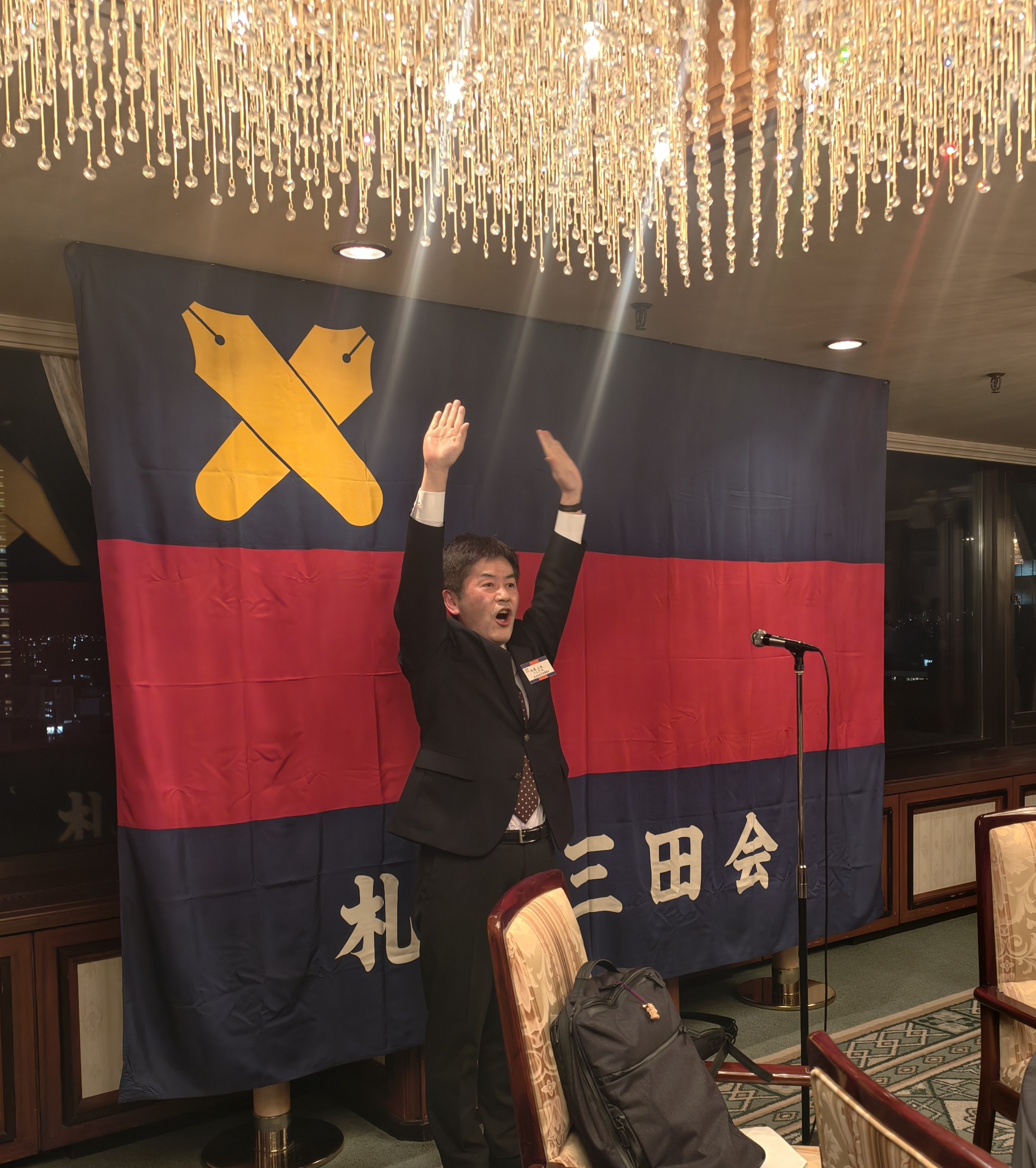 大いに親睦を深めました(司会進行はレギュラーの平山副幹事長)